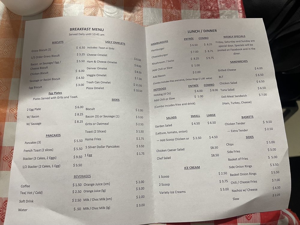 Choose from a mouthwatering menu that includes hand-crafted hamburgers starting at just $3.50, and crisp, flavorful hot wings tailored to your spice preference. Customers rave about the delectable pancakes and the renowned trashcan omelet, both praised for their fresh, home-cooked quality.