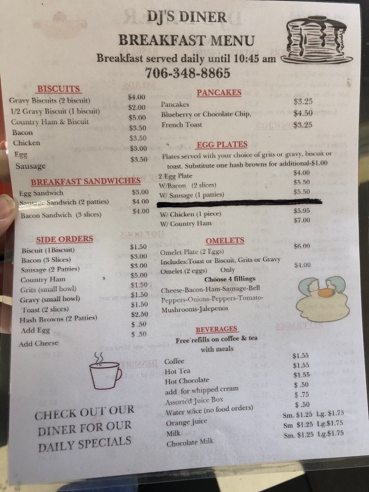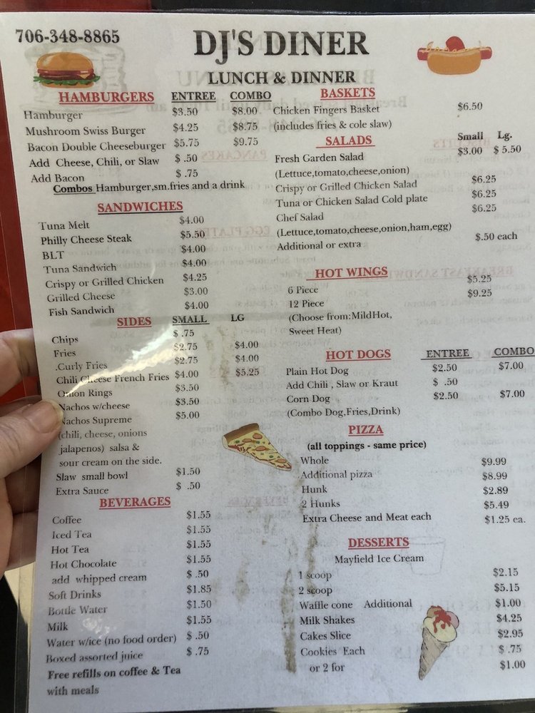 Introducing DJ's Diner, a charming eatery nestled in the heart of Cleveland, GA, specializing in American breakfast and brunch delights. This unclaimed gem offers a cozy atmosphere perfect for families and groups, complete with outdoor seating and classic diner vibes featuring a working 45rpm jukebox.